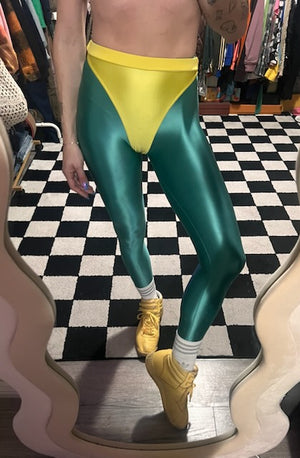 One pair of green, elastic tights plus one stretchy thong of a customizable color for a high-performance and comfortable workout