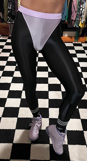 One pair of shiny black, elastic tights plus one stretchy thong of a customizable color for a high-performance and comfortable workout