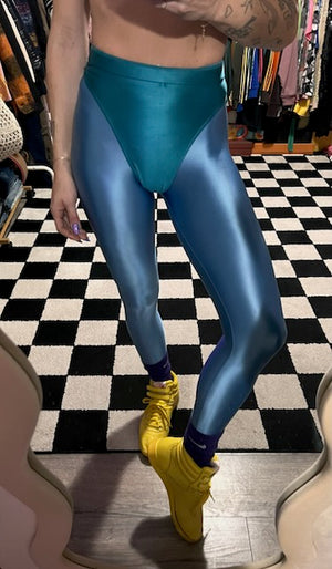 One pair of sky high blue, elastic tights plus one stretchy thong of a customizable color for a high-performance and comfortable workout