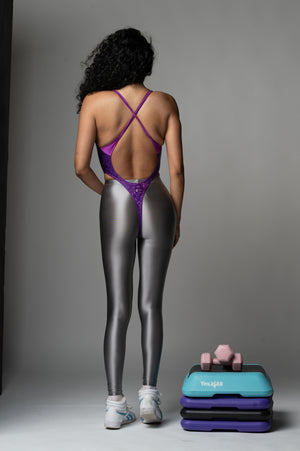 Perfect for both casual outings and special occasions, the X Back Bodysuit comes in stunning color options: Cocoa Glitter, Glitter Purple and Silver — adding a touch of sparkle to your wardrobe.